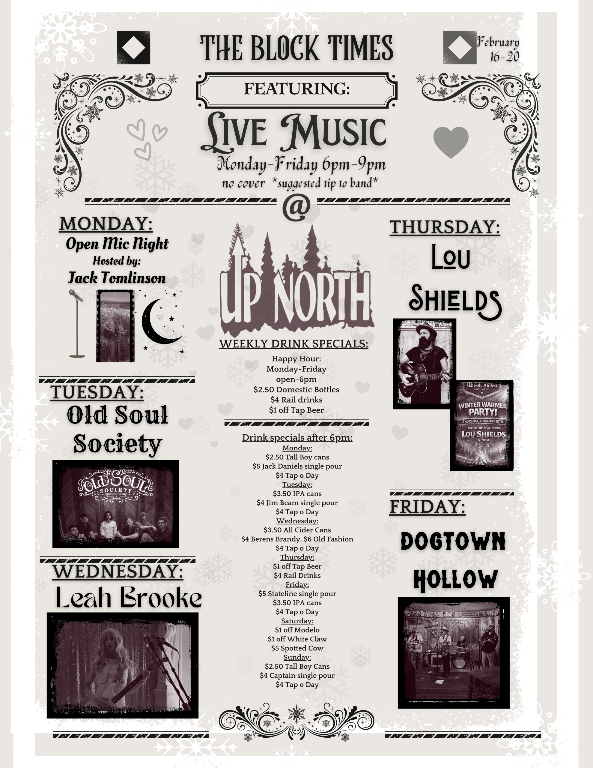 LIVE MUSIC! All performances are 6pm-9pm! We are doing our best to provide a fun, and safe atmosphere for all of our customers, musicians, regulars, staff and everyone in between! Any schedule changes will be updated on Facebook/and or Instagram, and as always ENJOY THE MUSIC! ![]()
