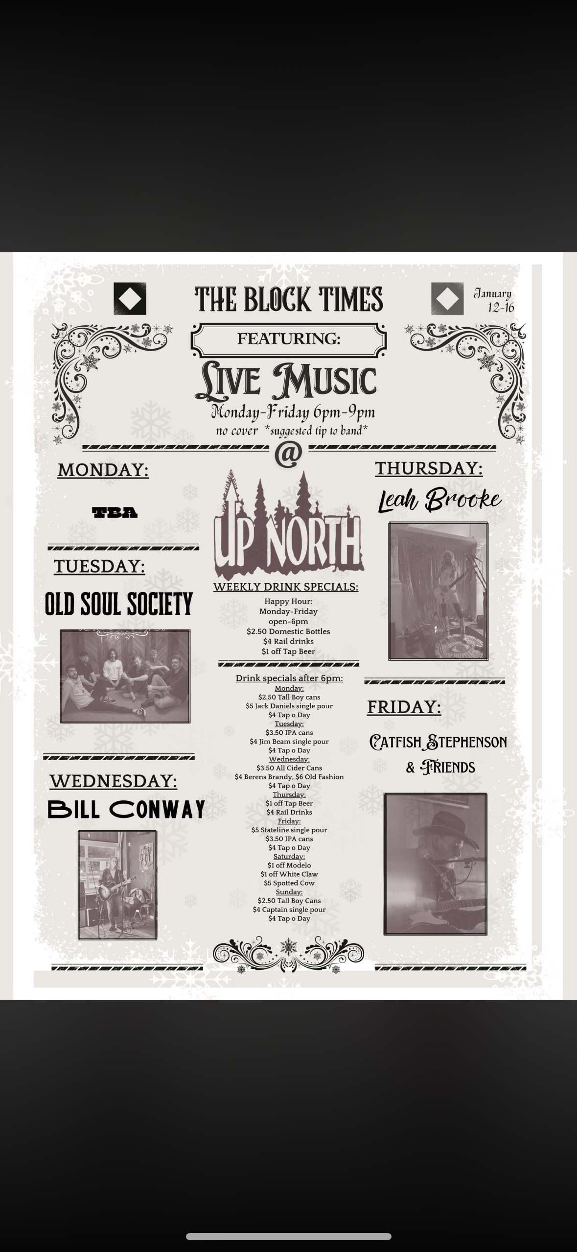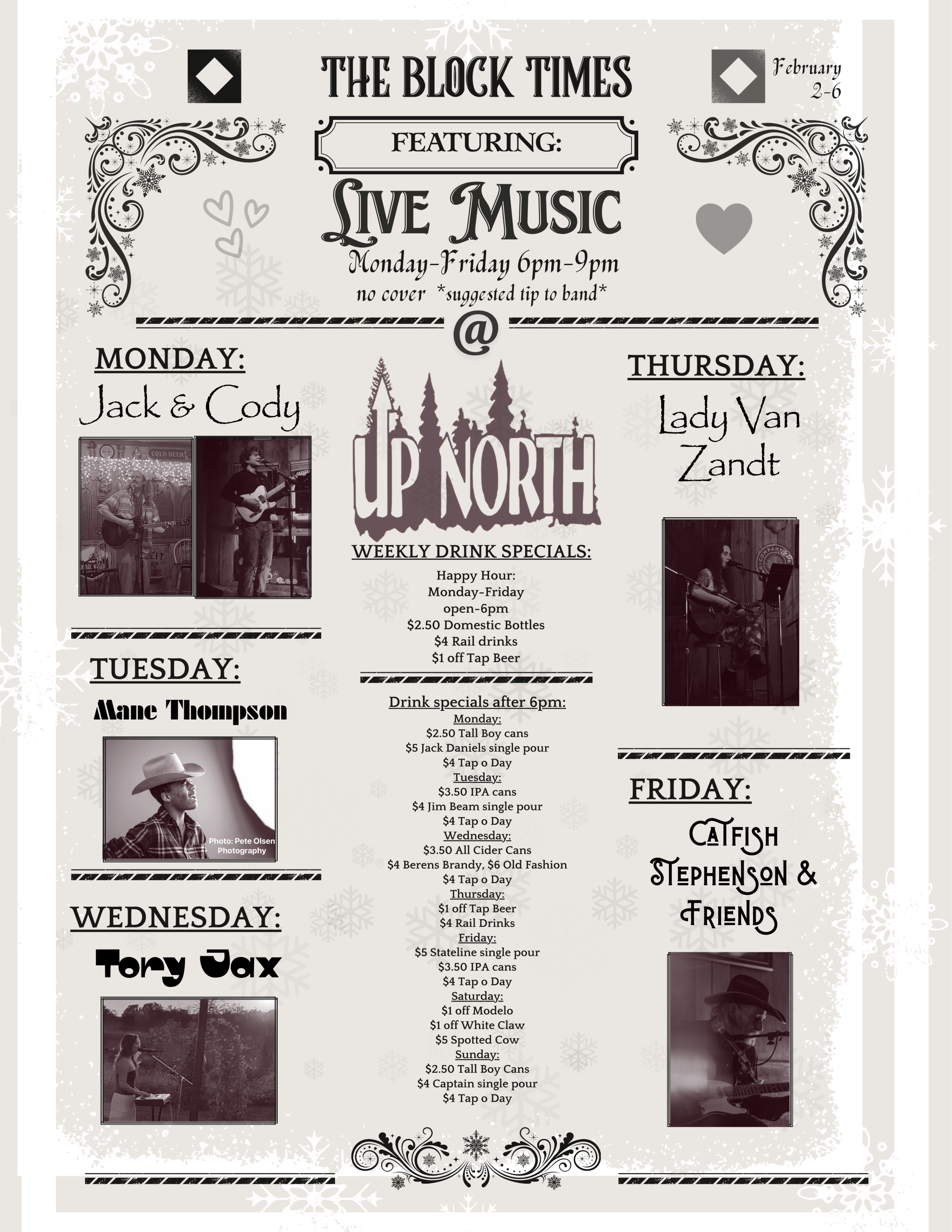 LIVE MUSIC! All performances are 6pm-9pm! We are doing our best to provide a fun, and safe atmosphere for all of our customers, musicians, regulars, staff and everyone in between! Any schedule changes will be updated on Facebook/and or Instagram, and as always ENJOY THE MUSIC! ![]()